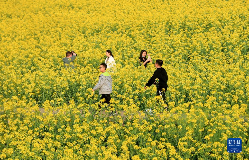 2月25日,游人在四川省泸州市泸县喻寺镇谭坝村油菜花海赏景游玩。