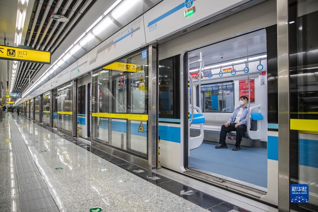 2月27日,在重庆轨道交通5号线北延伸段鲁家沟站,乘客在列车内等候发车。