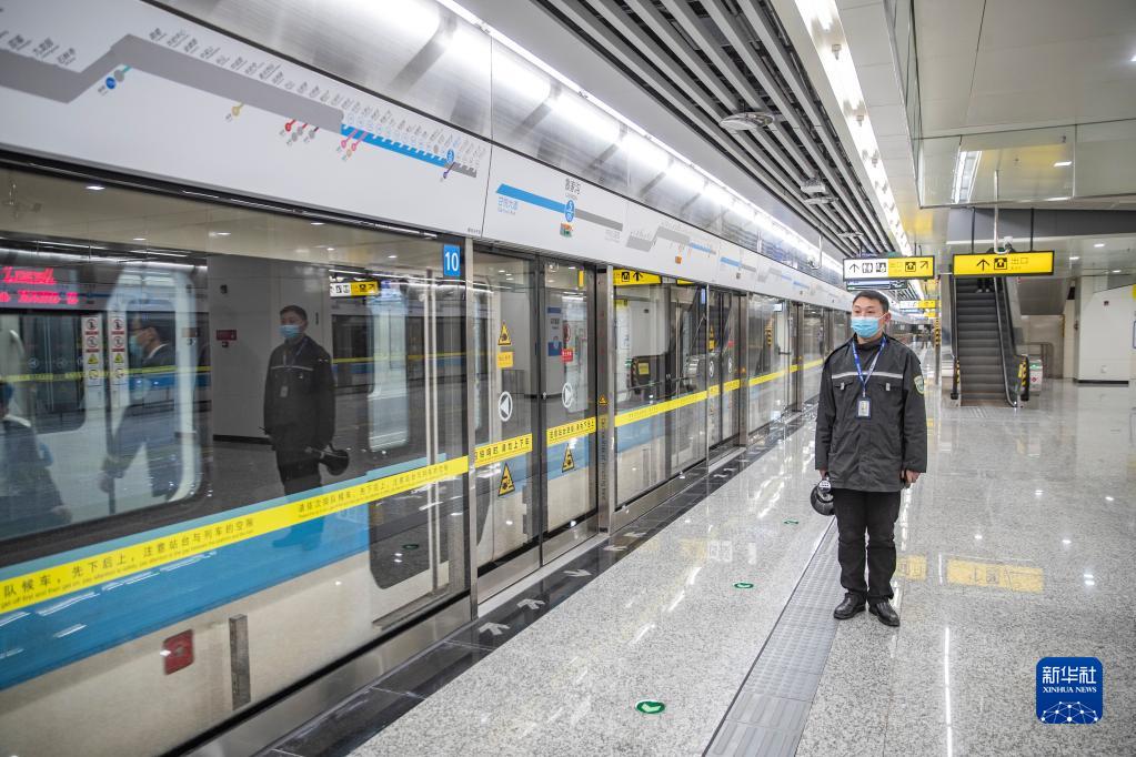 2月27日,在重庆轨道交通5号线北延伸段鲁家沟站,工作人员在站台工作。