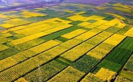 ↑2月27日,旅游专列行进在云南曲靖市罗平县的油菜花海中(无人机照片)。新华社发(毛虹摄)