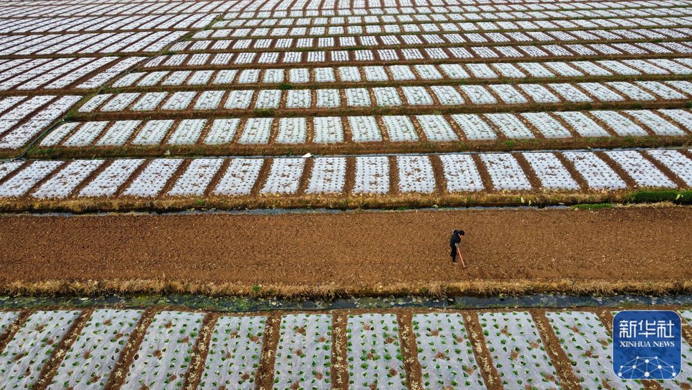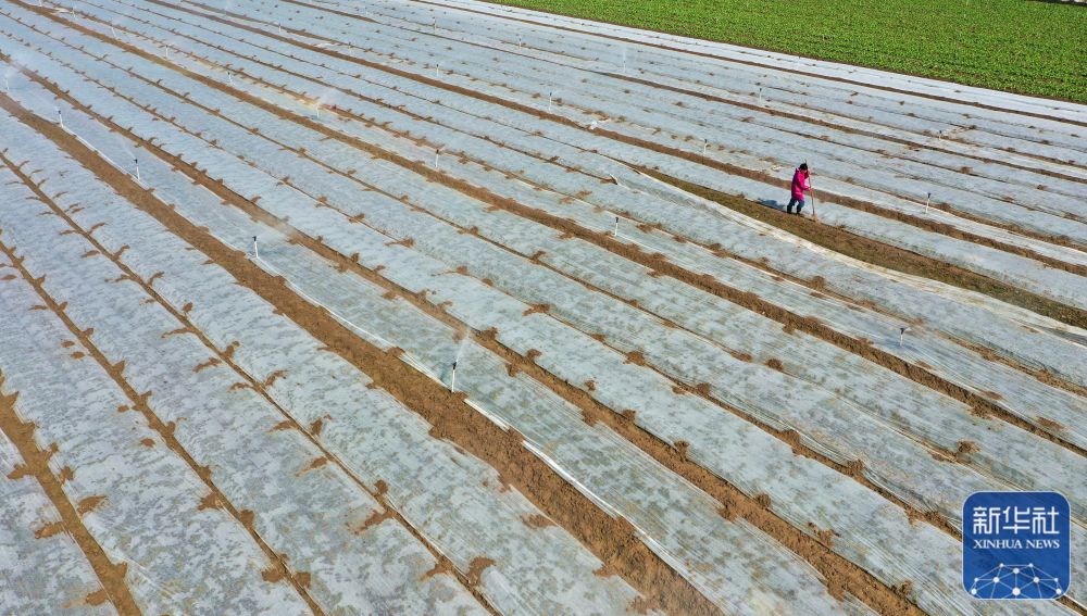 2月28日,菜农在云南省曲靖市沾益区西平街道的蔬菜种植基地平整菜地(无人机照片)。新华社发(杨俊鹏摄)