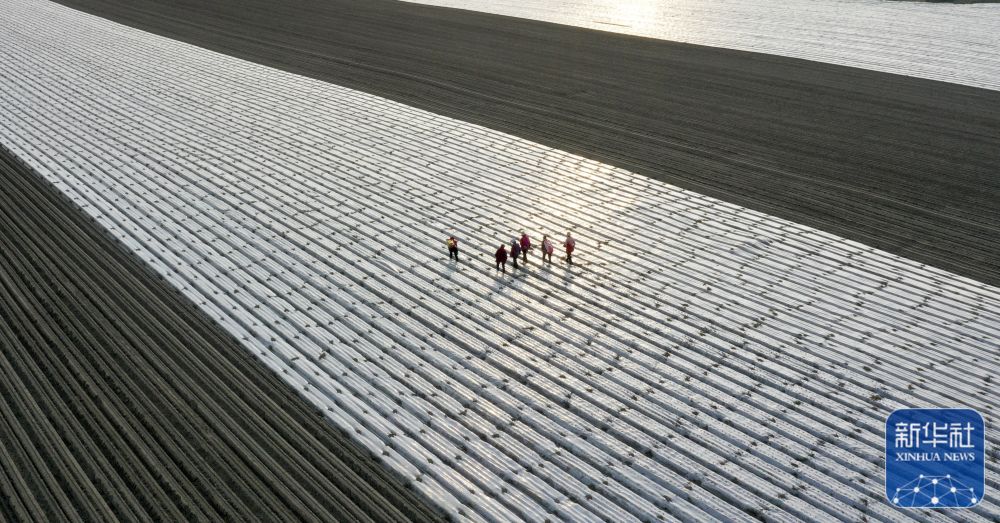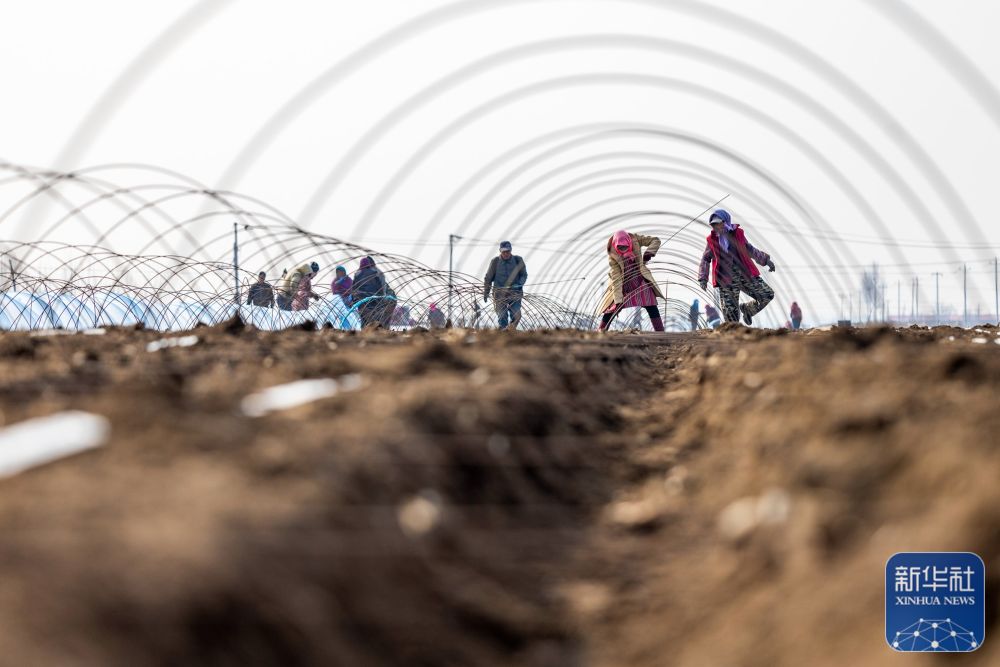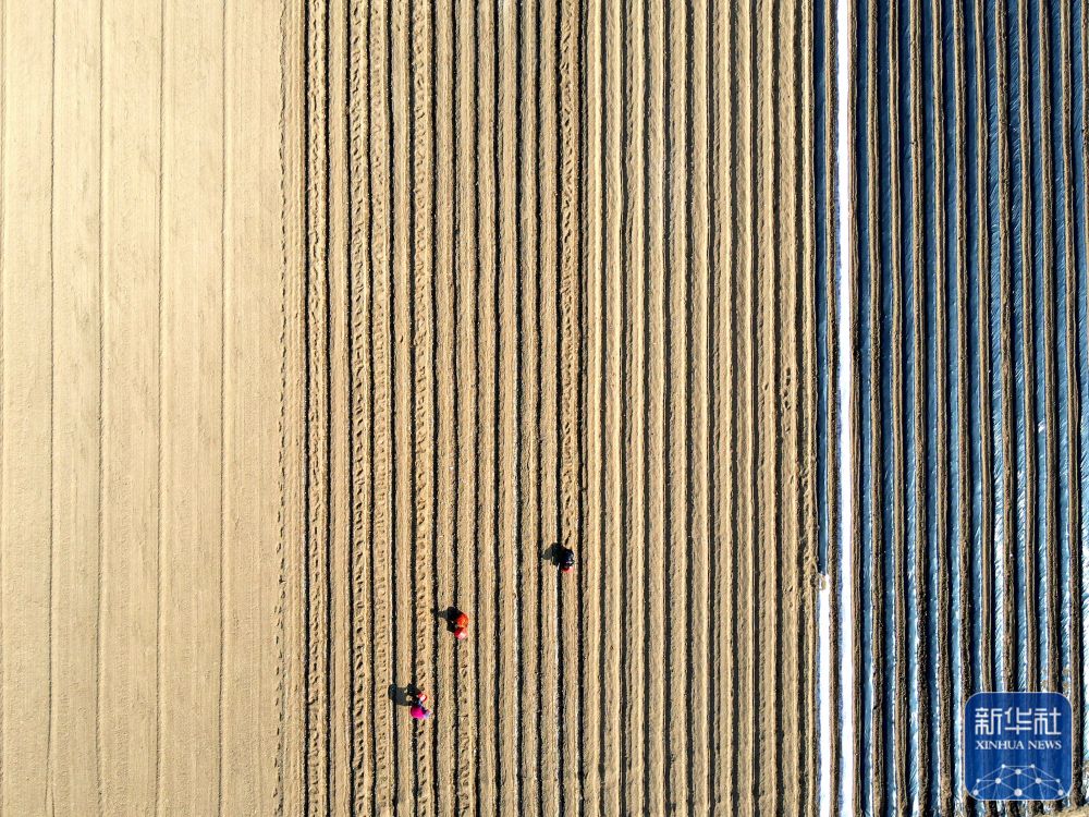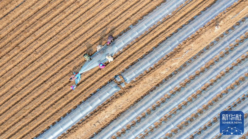 ⬆️2月27日,河北省唐山市丰南区岔河镇王各庄村农民为刚刚栽种的马铃薯覆膜。新华社发(李秀清摄)