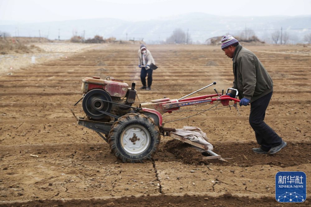 ⬆️2月27日,甘肃省定西市安定区内官营镇农民在平整土地。新华社发(王克贤摄)