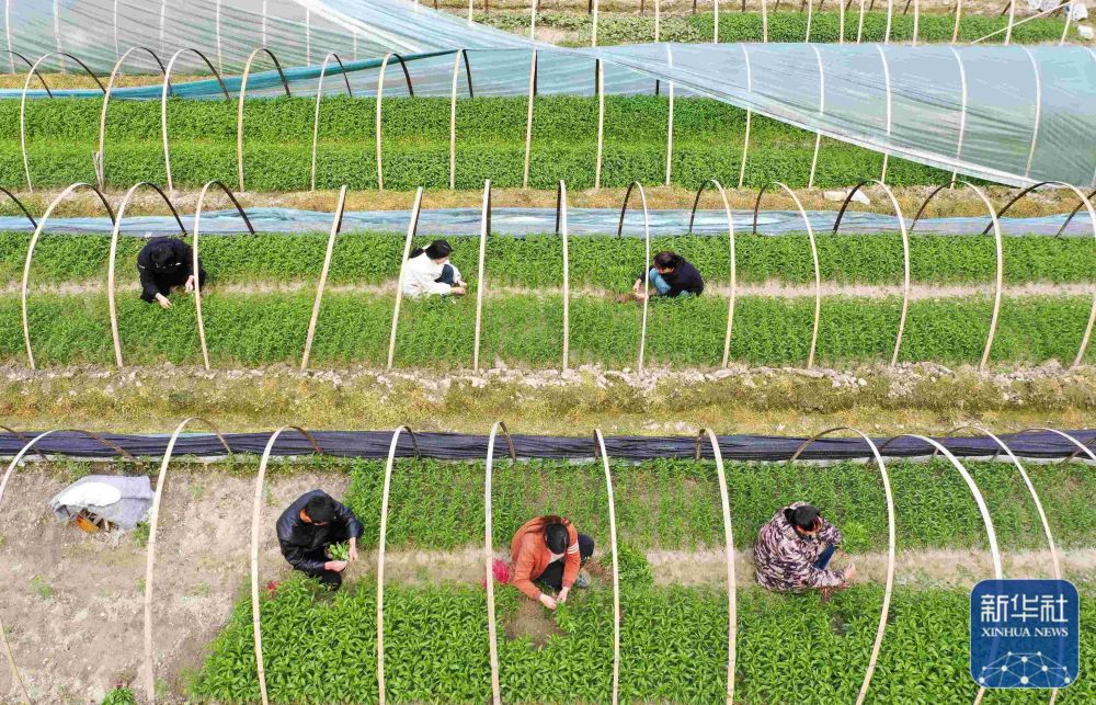 ⬆️2月26日,四川省南充市蓬安县锦屏镇中坝社区的农民在蔬菜种植基地劳作(无人机照片)。新华社发(刘永红摄)