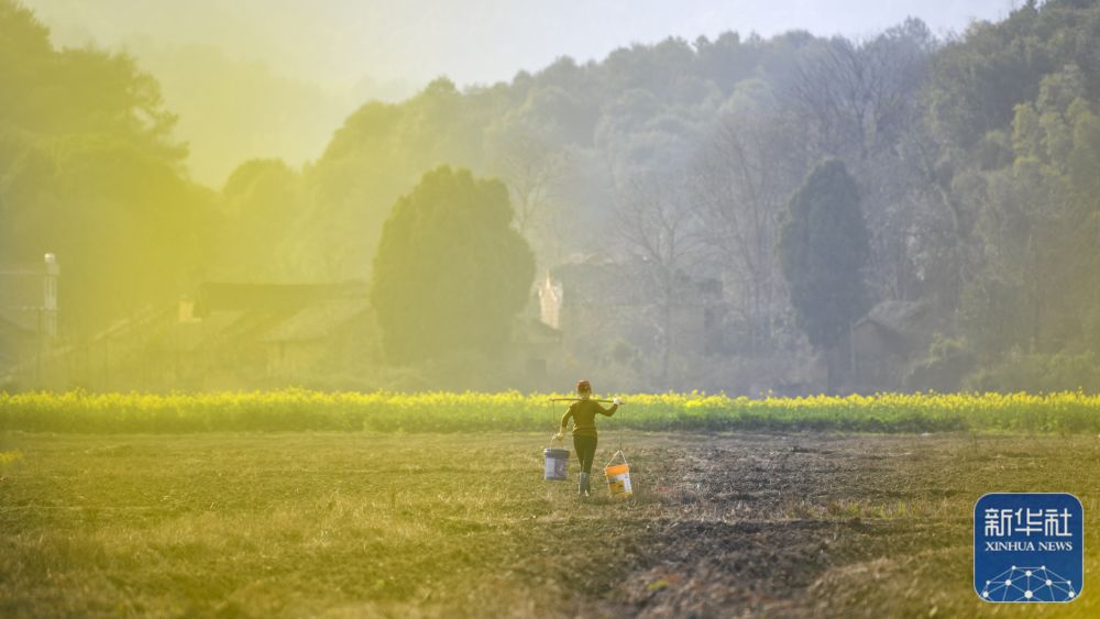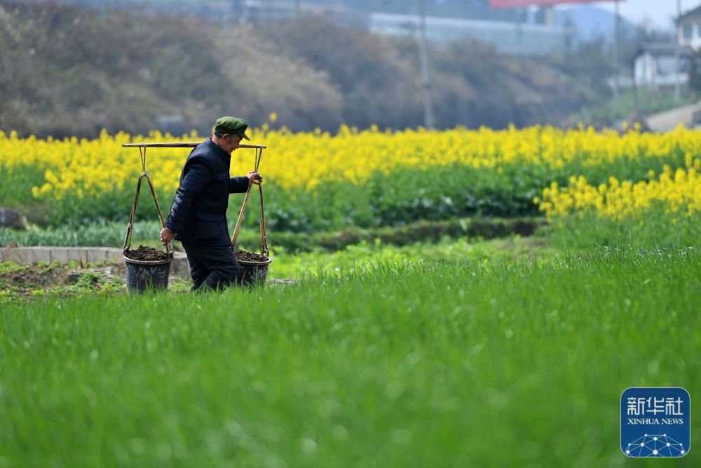 ⬆️2月27日,湖南省常宁市西岭镇西冲村农民在田间挑运肥料。新华社发(周秀鱼春 摄)