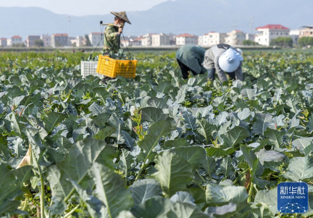 2月28日,在福建省漳州市龙海区东园镇港边村,农民在采收蔬菜。新华社发(张旭摄)