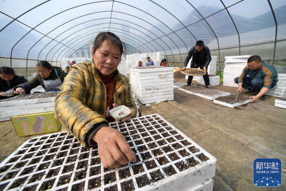 2月28日,村民在贵州省绥阳县蒲场镇儒溪村进行育苗工作。新华社记者 杨楹 摄