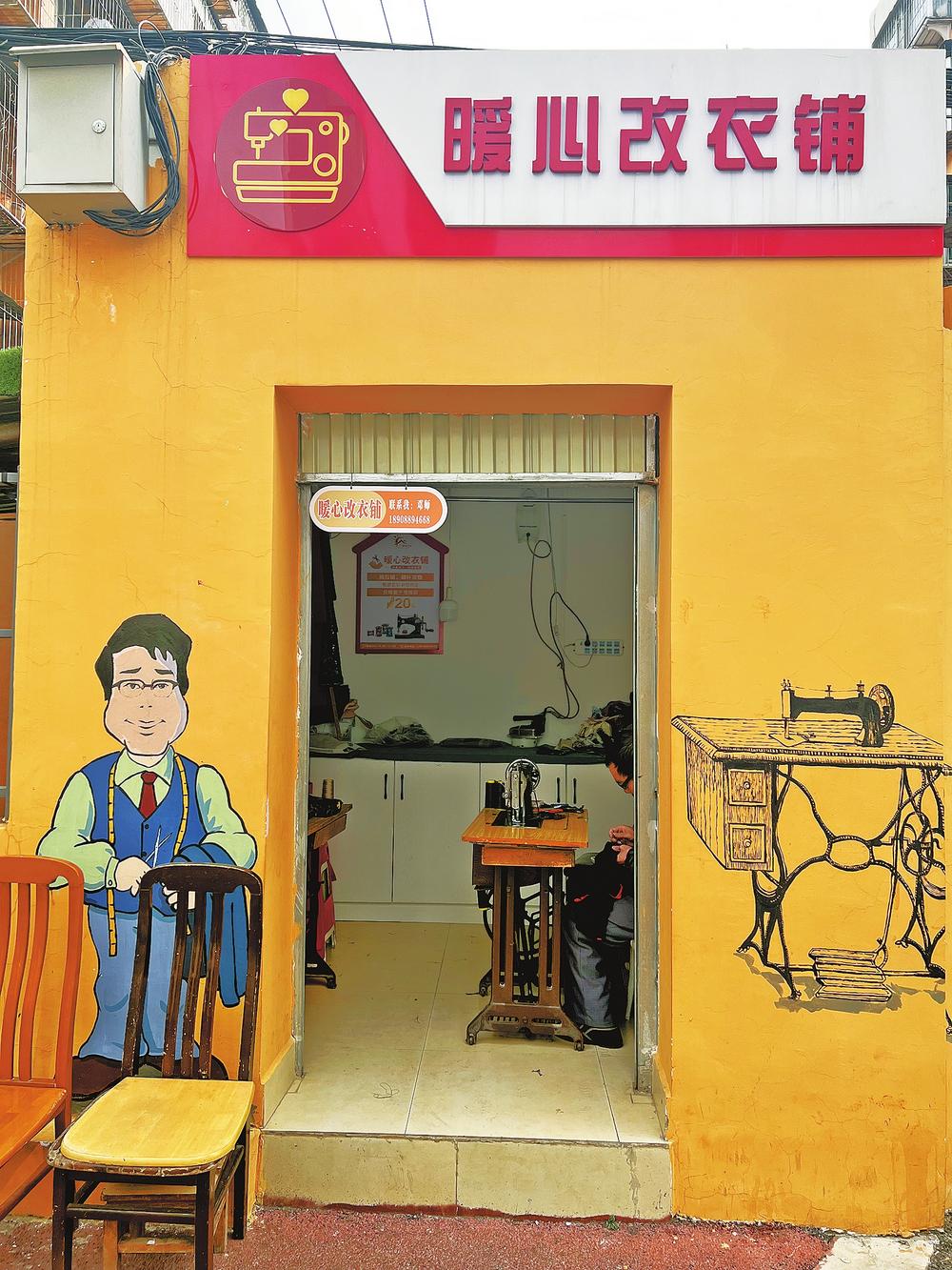 在“暖心改衣铺”,65岁的邓师傅正忙着处理居民送来修改的衣服。邓师傅告诉记者,以前他在路边摆摊,虽然生意好但免不了风吹日晒。“社区安排了一个门面后,可以遮风避雨,我也可以安心地为居民提供更好的服务了。”邓师傅笑着说。