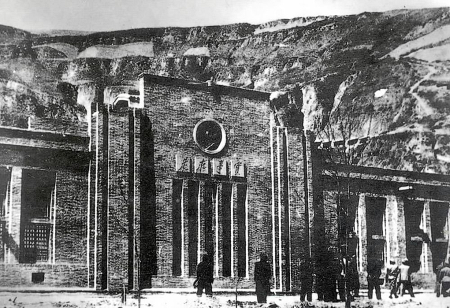 ↑这是1943年11月在延安落成的中共中央党校大礼堂。礼堂正面墙上镌刻着毛泽东的题词“实事求是”。因党而立、因党而兴、因党而强。90年来,中央党校为我国革命、建设、改革事业培养了一大批领导骨干,发挥了重要作用。