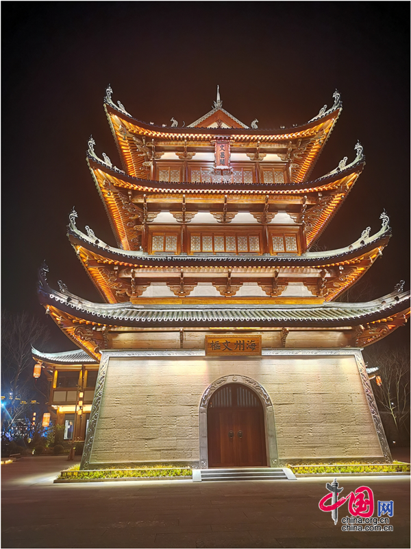 拐过泉石环绕、暗香浮动的引导景观片区,葭沚老街的地标建筑文昌阁,赫然在目。