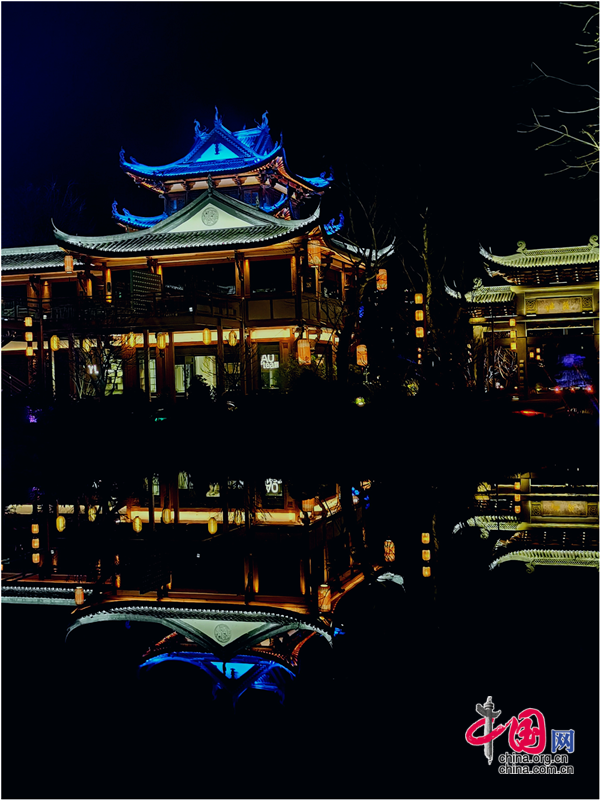 南广场新建的大隐书局、浦江荟、御道茶会,其建筑风格就属于五凤楼,每幢楼的屋脊层层飞檐,如羽翼般的曲线,形如展翅的凤凰,尤为灵动。