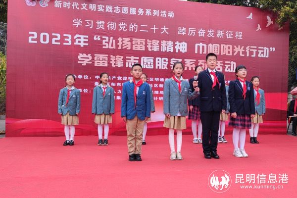 昆明信息港讯 记者合宇聪 3月3日,昆明市明通小学开展雷锋日主题活动暨新队员入队仪式。各班级通过班会,引导同学们争做雷锋精神的传承者、乐于助人精神的实践者、良好社会风尚的创造者,提高同学们的社会责任感和奉献意识。