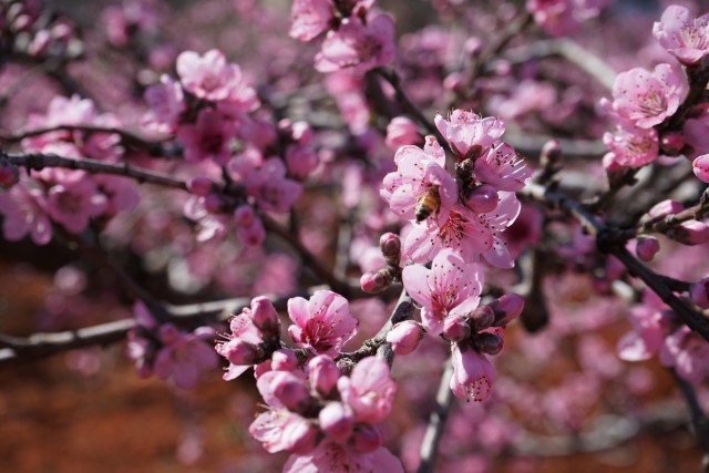 仲春时节,正值桃花盛开,在陆良县青山和大莫古镇麻舍所等地的桃园里,桃花竞相绽放,一簇簇粉红的桃花挂在枝头,粉红娇艳,微风拂过,一朵朵盛开的桃花随风摇曳,花香迎面扑来,蜜蜂在花间采蜜,春日美景美不胜收。