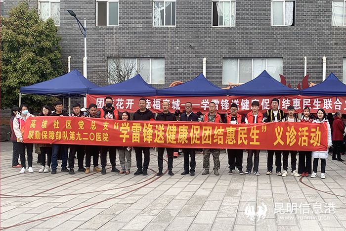 昆明信息港讯 记者曹月 通讯员何骏 在学雷锋纪念日来临之际,为弘扬雷锋精神,关爱社区居民健康,3月3日上午,高坡社区党总支联合联勤保障部队第九二0医院在小高坡小组开展“学雷锋送健康促团结惠民生”义诊活动。