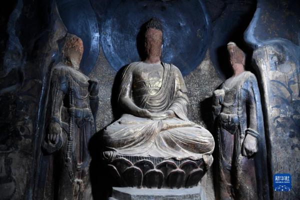 这是宁夏须弥山石窟圆光寺48号窟内完成修复的佛像(2月28日摄)。新华社记者 王鹏 摄