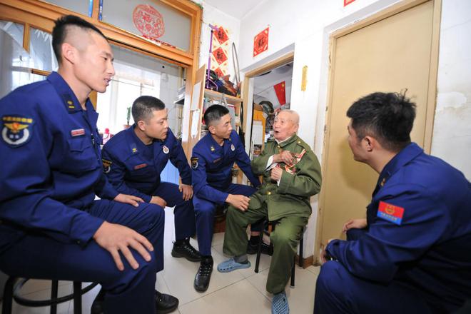 启工消防救援站消防救援人员看望退伍老兵。辽宁省消防救援总队供图