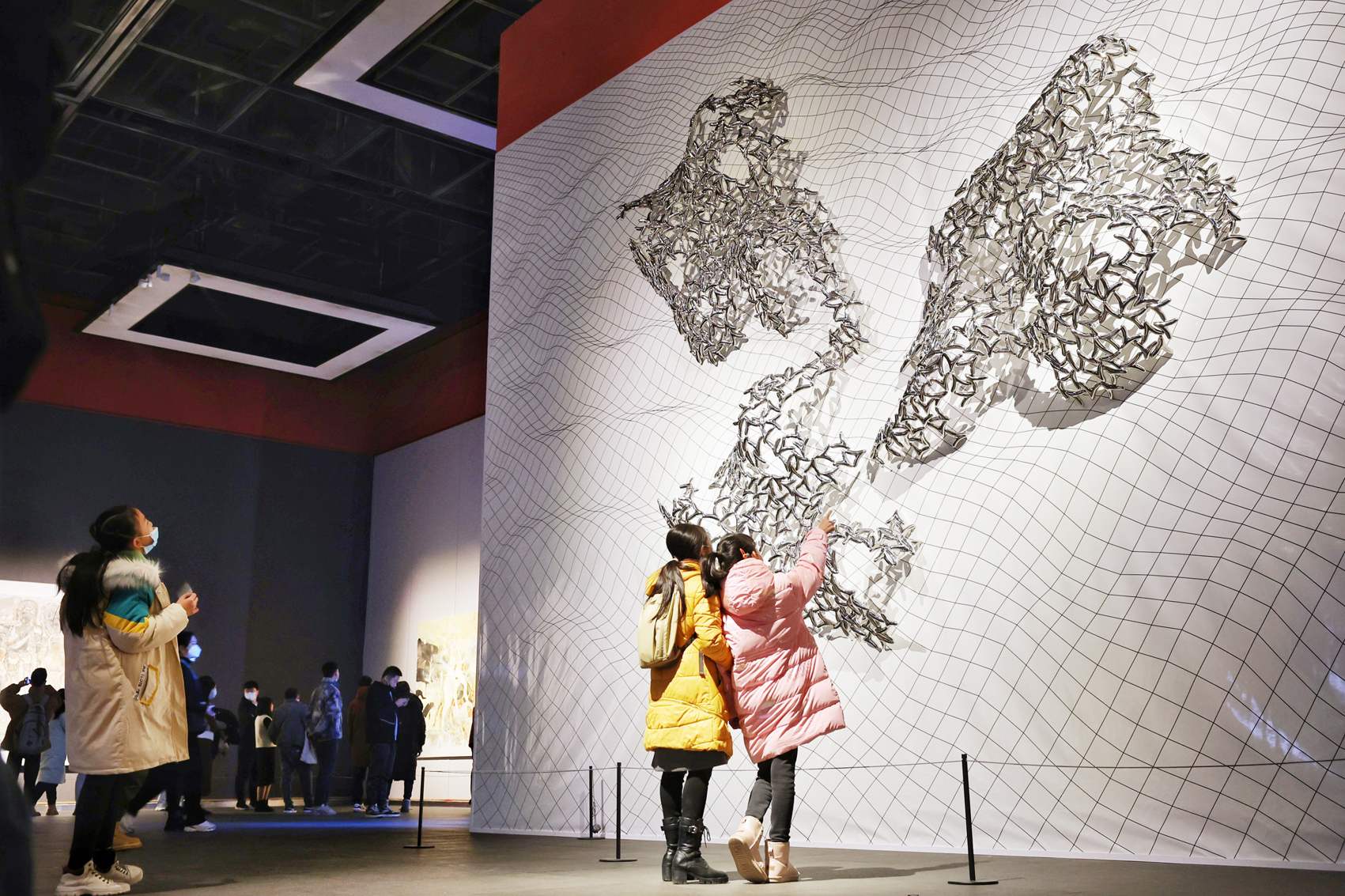 民众在山东美术馆参观2022济南国际双年展 王 鑫 摄