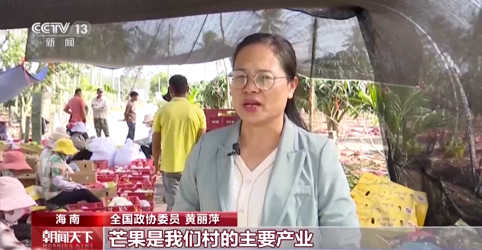 全国政协委员 黄丽萍:芒果是我们村的主要产业。到目前为止,总共的种植面积我们有3000多亩,家家户户都有芒果园,可以说芒果也是老百姓的“绿色银行”。