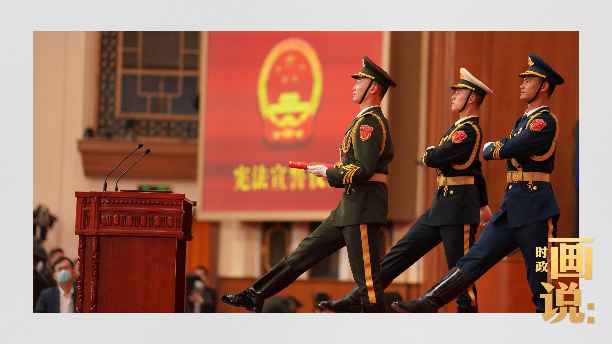 新当选的国家主席、中央军委主席习近平庄严宣誓
