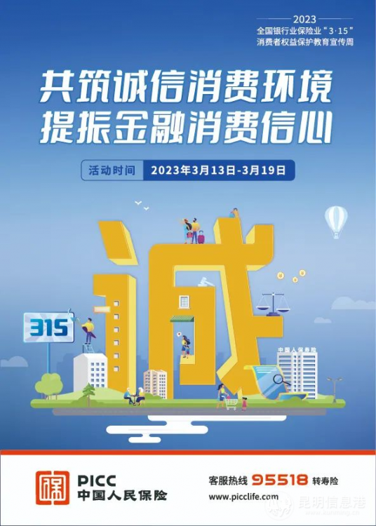 人保寿险云南省分公司于2023年3月13日至19日期间组织开展以“共筑诚信消费环境 提振金融消费信心”为主题的2023年3·15保险消费者权益保护教育宣传周活动。