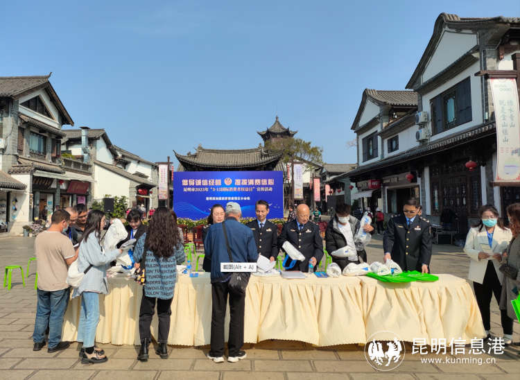昆明信息港讯 记者杨雁 在第41个国际消费者权益日到来之际,3月15日,昆明滇池国家旅游度假区市场监管分局在云南民族村昆明故城开展2023年“3·15国际消费者权益日”活动。活动聚焦主责主业,旨在进一步营造辖区更加安全、放心的消费环境,全面促进消费,提振消费信心。