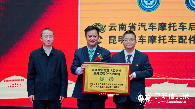 会上,官渡区人民医院邓昌院长为云南省汽车摩托车后市场行业协会颁发“昆明市官渡区人民医院服务民营企业联络站”牌匾并表示,协会会员到医院就医将享受绿色通道等福利。协会会长李松上台接牌,他认为,此举体现了官渡区委、区政府和各级部门创优营商环境做出的努力,以及对民营企业的关心和重视,鼓励民营企业重燃辉煌的信心。