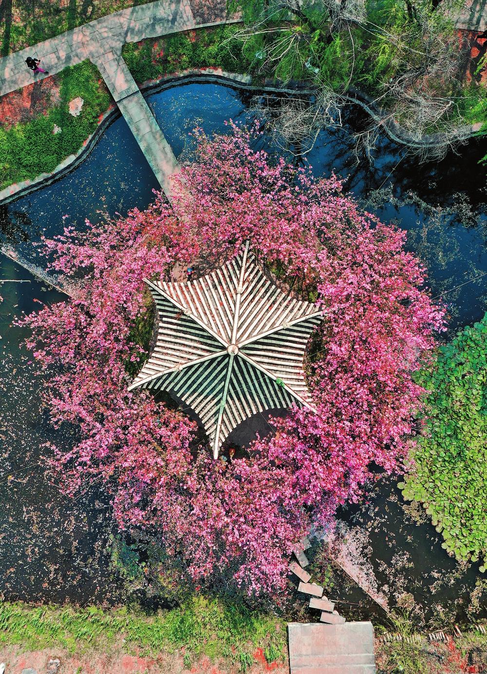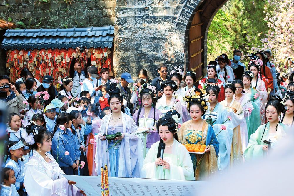 春分时节,昆明春意盎然,圆通山公园、大观公园南园、金殿名胜区满园春色关不住,游客漫步花丛,寻春览胜。汉服爱好者们到金殿名胜区内进行复原妆造表演、才艺表演、传统服饰配饰及手作文创集市活动。(记者 陈飞 杨峥 实习生 李嘉琪 摄)
