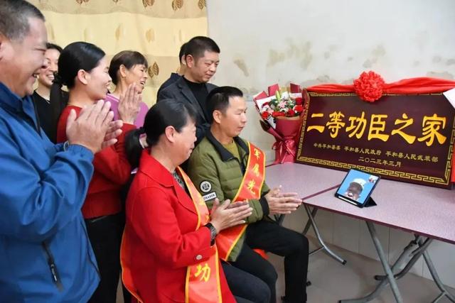 “二等功臣之家”牌匾、三等功的喜报在民兵们的护送下,敲锣打鼓来到陈明良兄弟俩家中,一时间,围观的乡亲越来越多,“功臣”家里如同过年一样热闹。