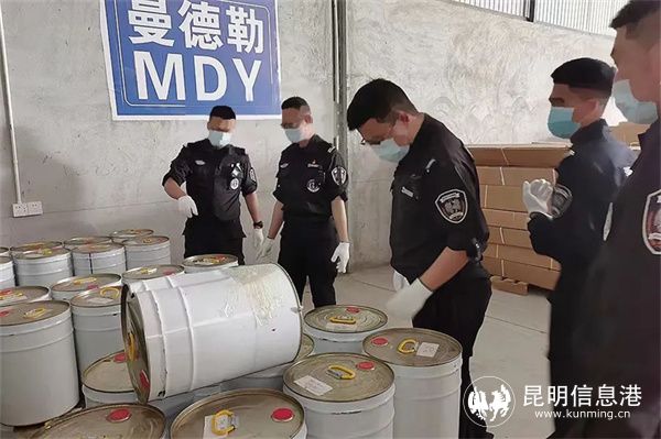 全面掌握易制毒化学品生产、经营、运输、销售企业和用户的情况,全市完成企业核查率达99.89%,核销率为97.21%。全面排查储存易制毒化学品“黑窝点”“黑仓库”并坚决予以打击,立案破获易制毒案件10起,缴获易制毒物品213.995吨。2月24日,禁毒支队联合官渡分局在昆明经开区某公司例行检查时,查获制毒物品氯化亚砜100桶,重32吨;2月25日,禁毒支队联合呈贡分局在呈贡区某仓库查获制毒物品苯36桶,重7.2吨。