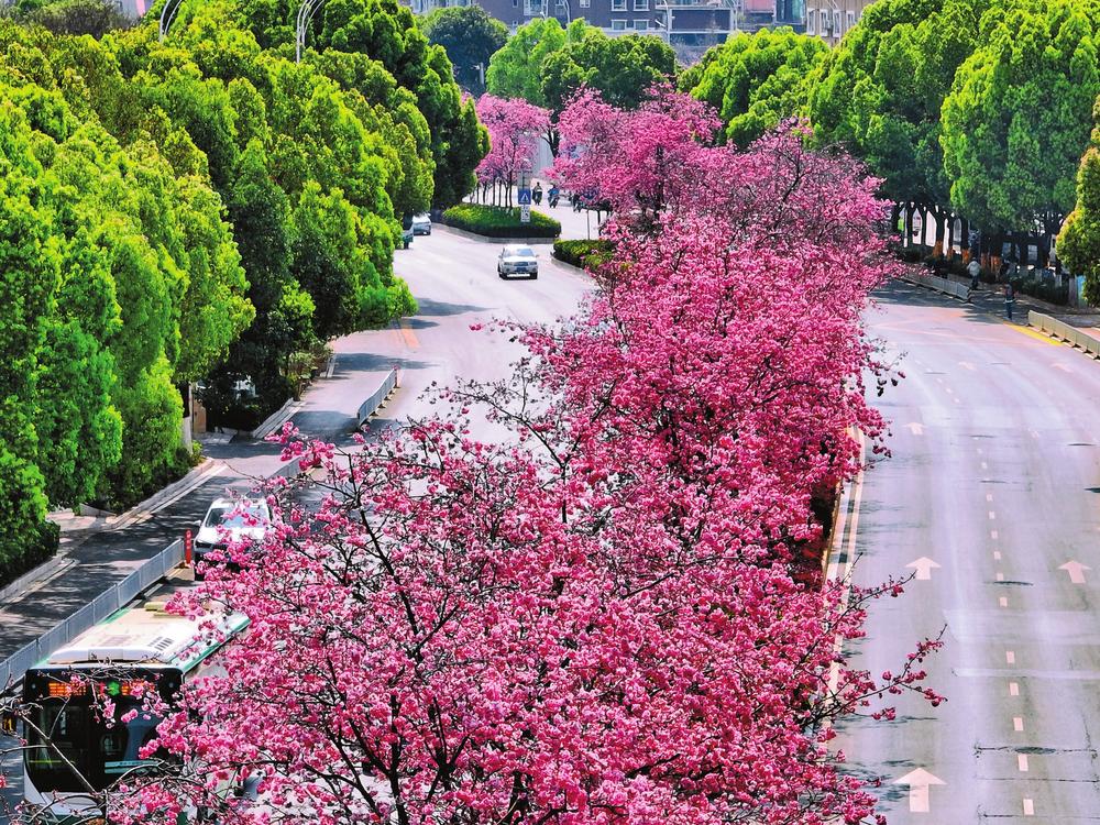 近年来,昆明市充分利用生态景观资源,积极推进花卉景观大道建设,全面提升城市绿化品质。圆通街、穿金路上的樱花,金兰路上的泡桐,教场中路上的蓝花楹,日新路、广福路和北京路上的月季,文林街上的银杏,红塔西路的冬樱花,龙泉路的梅花等景观,一路一景,四季有花。目前,昆明市主城区已有100多条道路形成了一定规模的花卉景观效果,向市民游客展示着四季不同的“花卉文化”和春城魅力。(云南日报 胡妤雅)