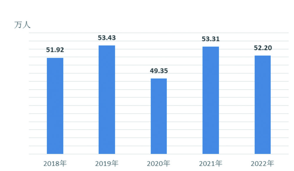 图3 2018-2022年云南城镇新增就业人数