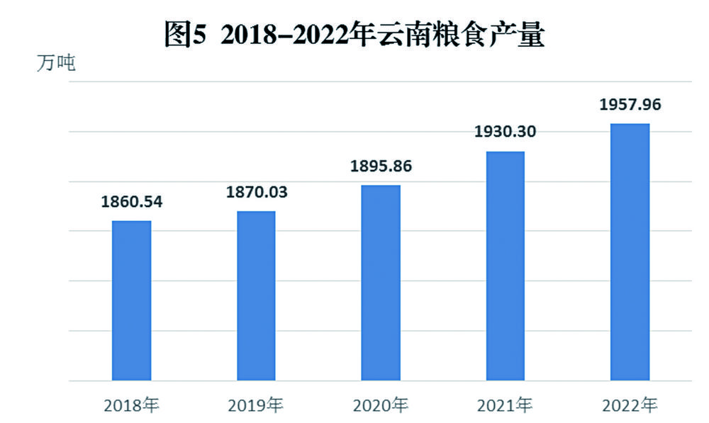 图5 2018-2022年云南粮食产量
