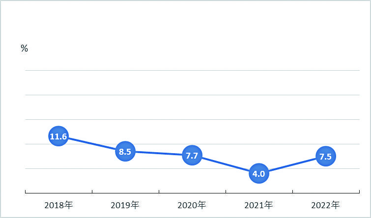 图6 2018-2022年云南固定资产投资(不含农户)增长速度
