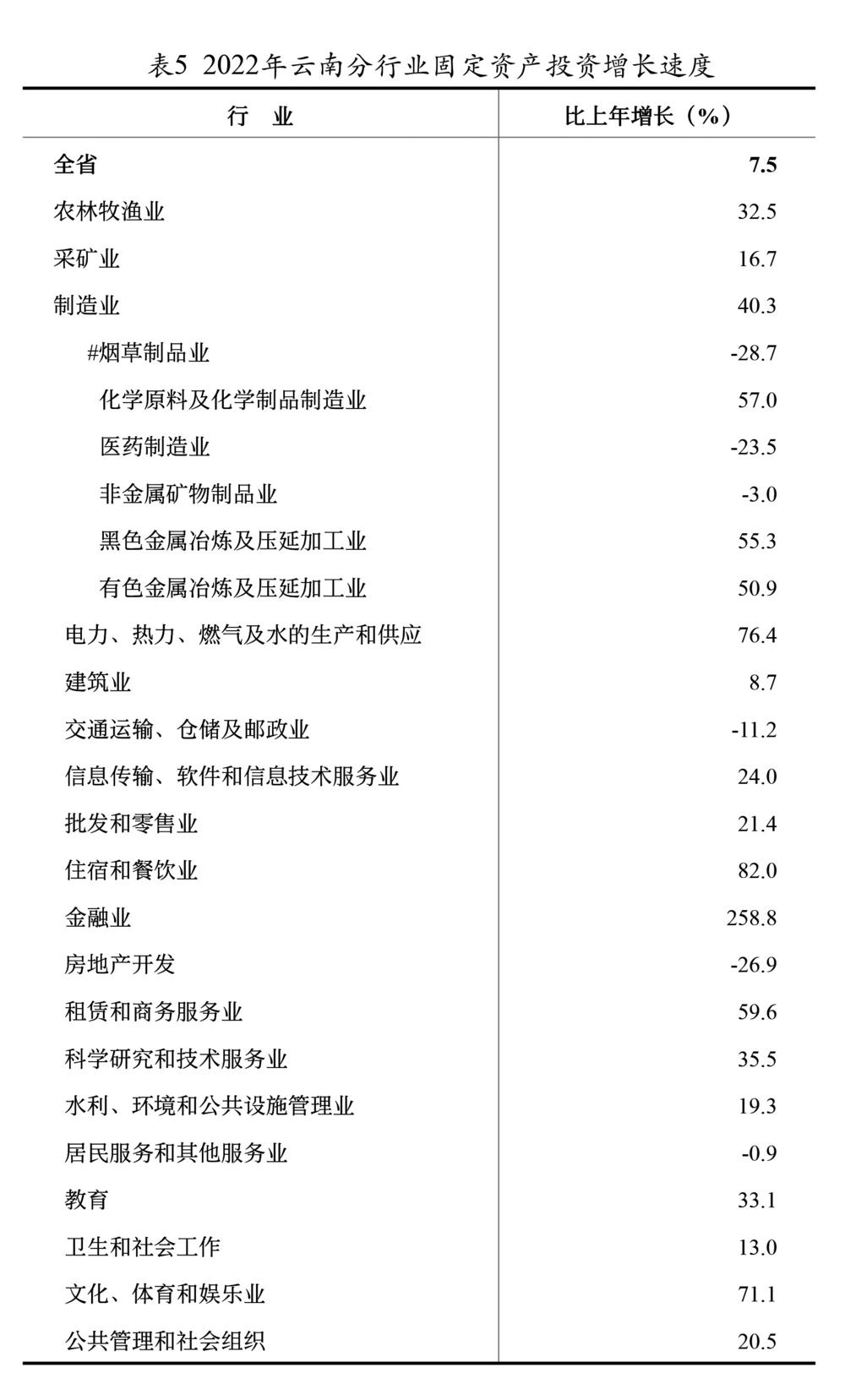 全年固定资产投资(不含农户)[11]比上年增长7.5%。分三次产业看,第一产业投资增长22.5%,第二产业投资增长48.7%,第三产业投资下降2.3%。