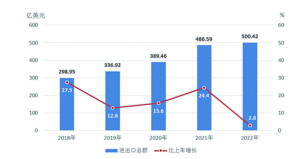 图8 2018-2022年云南进出口总额及增长速度
