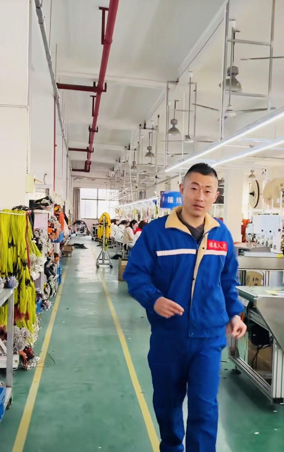 吉浪浪在生产车间直播。(苏轩 摄)