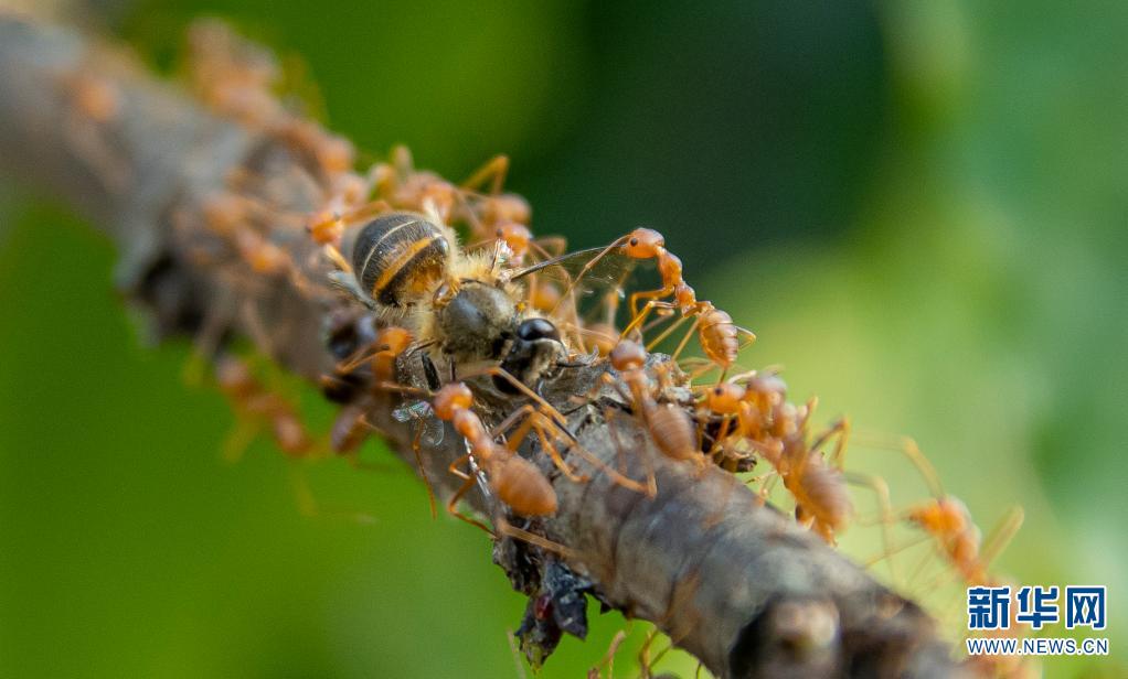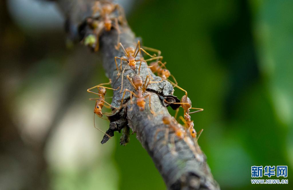 近日,在云南省保山市潞江坝,摄影师用微距镜头记录下黄猄蚁觅食画面。