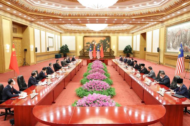 安瓦尔表示,我是作为中国的真正朋友、怀抱对中国的真诚友好来华访问。马来西亚人民真心敬佩中国取得的巨大成就。习近平主席是具有世界影响的伟大政治家,不仅改变了中国的历史发展进程,也为世界和平与发展带来希望。习近平主席对国际形势拥有深刻理解和远见卓识,提出的全球安全倡议、全球发展倡议、全球文明倡议极富远见,构建人类命运共同体理念同马政府提出的“昌明大马”理念高度契合。马方愿同中方全力合作,推动有关倡议落地生效,推进共建“一带一路”合作。马方愿同中方加强双边经贸合作和“两国双园”建设,借鉴中方减贫经验,加强农业现代化等领域合作。欢迎中国企业赴马投资合作。中国穆斯林的宗教信仰自由和清真寺得到了很好保护,马方愿同中方深化文明交流对话。中国历史上从来没有侵略过其他国家,近期中方成功促成沙伊北京对话,再次表明中方为促进和平发挥的建设性作用。马方反对阵营对抗和强迫选边站队。东盟作为独立自主的力量,将为避免地区形势紧张升级发挥积极作用。