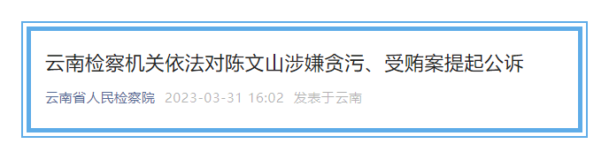 云南检察机关依法对陈文山涉嫌贪污、受贿案提起公诉