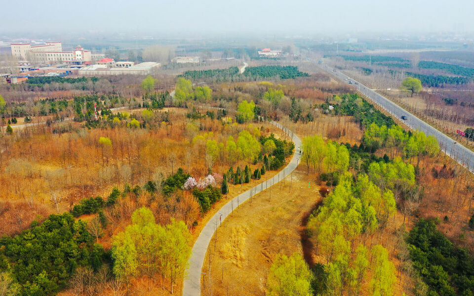 雄安新区千年秀林(3月20日摄,无人机照片)。截至2022年底,雄安新区累计造林46.9万亩,森林覆盖率由11%提高到34%。