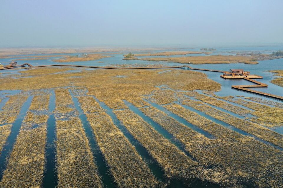 这是3月21日拍摄的白洋淀景区(无人机照片)。雄安新区设立以来,白洋淀经过系统性生态治理,淀区水质稳定提升,跻身全国良好湖泊行列。