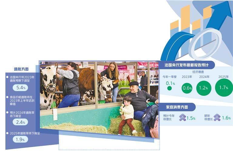 近期,法国央行综合法国统计局2022年四季度国民经济核算结果与2023年一季度商业调查短期经济数据后发布预测报告指出,在经历2022年底经济活动明显放缓后,法国经济保持轻微增长态势,预计今年一季度经济增速为0.1%,并逐步加快复苏步伐,2023年全年增速有望达0.6%,高于此前预测的0.3%,并在2024年和2025年分别达到1.2%和1.7%。同时,自去年12月份以来,在多项节能与欧洲支持措施及暖冬等因素共同作用下,法国相对平稳地度过能源危机,能源价格回落幅度高于预期。鉴于此,法国央行在此次报告中将全年通胀预期下调至5.4%,预计2024年和2025年分别下降至2.4%和1.9%。其中,食品价格通胀将在2023年上半年达到峰值,但真正进入价格回落区间或将等到2025年后。另外,法国家庭消费此前虽受购买力恢复停滞与疲软影响表现低迷,但在相应预防与支持措施下,将重新成为支持经济复苏的重要力量,预计在今明两年将分别增长1.5%和1.6%。有法国央行经济学家指出,上述预测数据的调整主要基于通胀率的回落与全球需求的强势复苏,预计在未来3年间,法国经济将继续在就业、家庭购买力、企业利润率等方面保持弹性,政府财政也将继续发挥重要的支持与刺激作用。对此,法国经济和财政部部长勒梅尔强调,法国经济增长证明了疫情冲击后法国经济的强势反弹和面对能源危机的韧性,今年将实现正增长。