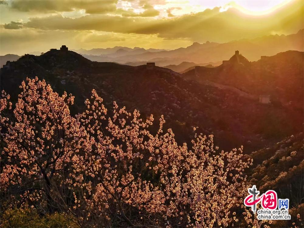 万里长城,金山惊艳。当金山岭长城的巍峨、挺拔、雄壮,遇上杏花的吐露芬芳、随风摇曳。这便又是一场最美的盛事。