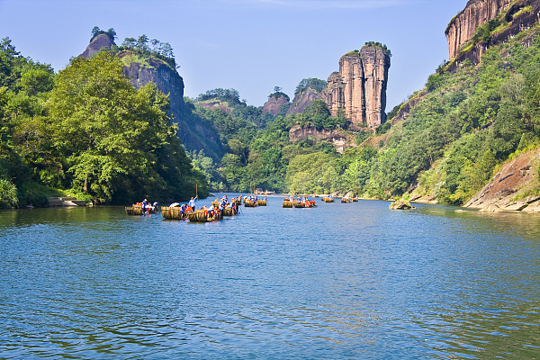 泛舟九曲溪,打卡天游云窝、大红袍等著名景点,感受清新自在的自然生态的同时,以茶为媒,品茶趣、探茶乡、赏茶戏,体验武夷山的茶文化。