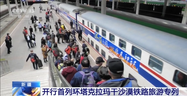 近日,搭载523名游客的Y936次“环塔之旅·非凡印记”旅游专列从乌鲁木齐站缓缓启程,开启了为期11天的环塔克拉玛干沙漠之旅。“坐着火车游新疆”已成为助力新疆旅游经济发展的一道亮丽风景线。