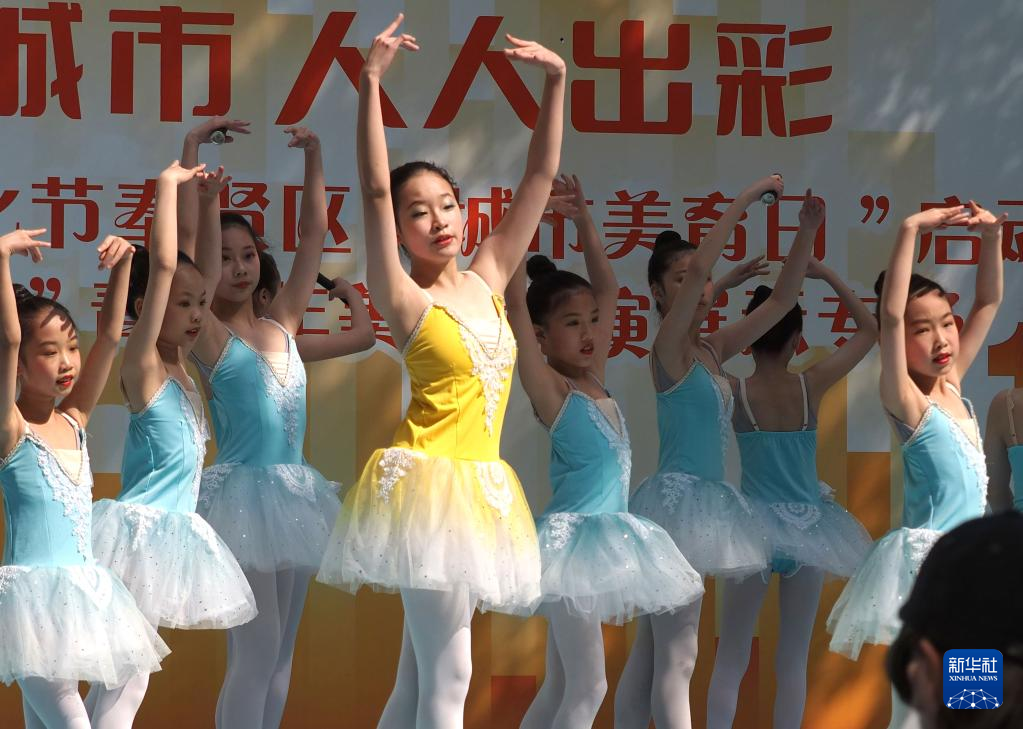 当日,已走过十年的上海市民文化节以“城市美育日”开启新一年的系列活动。“城市美育日”当天为市民奉上“群众文艺大汇演”“城市美育大放送”和“云上剧场大集锦”三道“大餐”,各区县举办的千余场特色活动让市民收获线上线下的精彩体验。(新华社 记者任珑/摄)