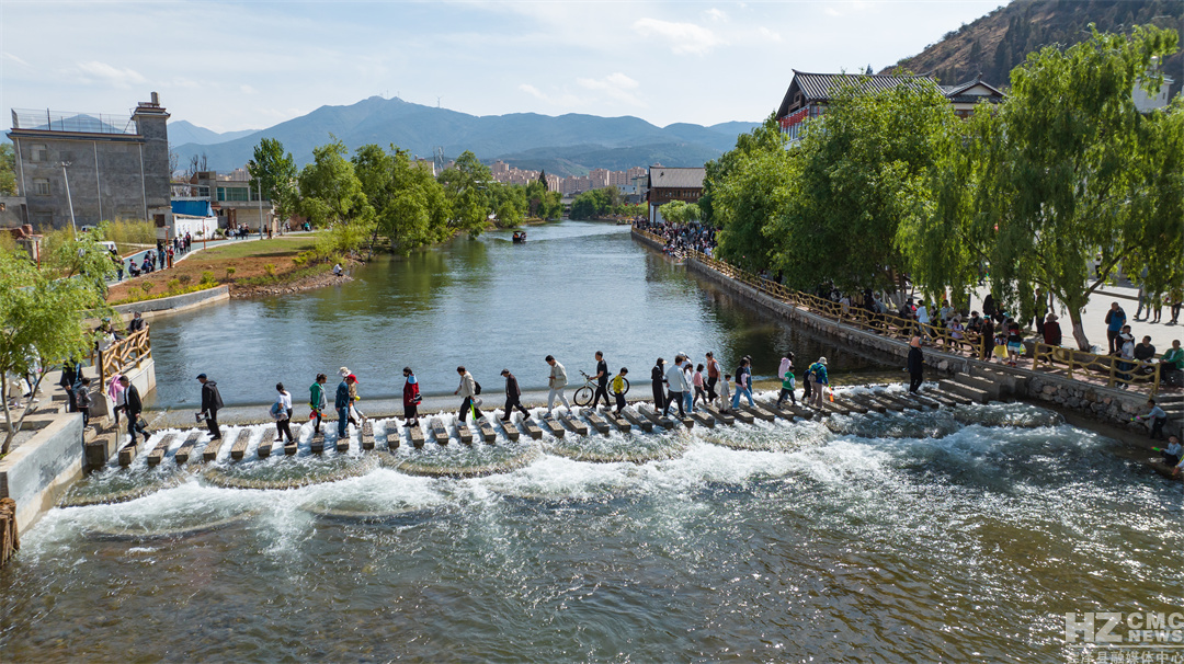 晨光熹微歌声展,水清岸绿景色新。沿着钟屏文旅小镇一路行进,“新”村依山傍水,人群熙熙攘攘;堤上垂柳依依,鲜花盛开;河中波光粼粼,竹筏穿梭。具有“乌蒙水乡”之称的钟屏文旅小镇成为网红打卡地后,给居住在这里的群众带来了可观的经济收入。