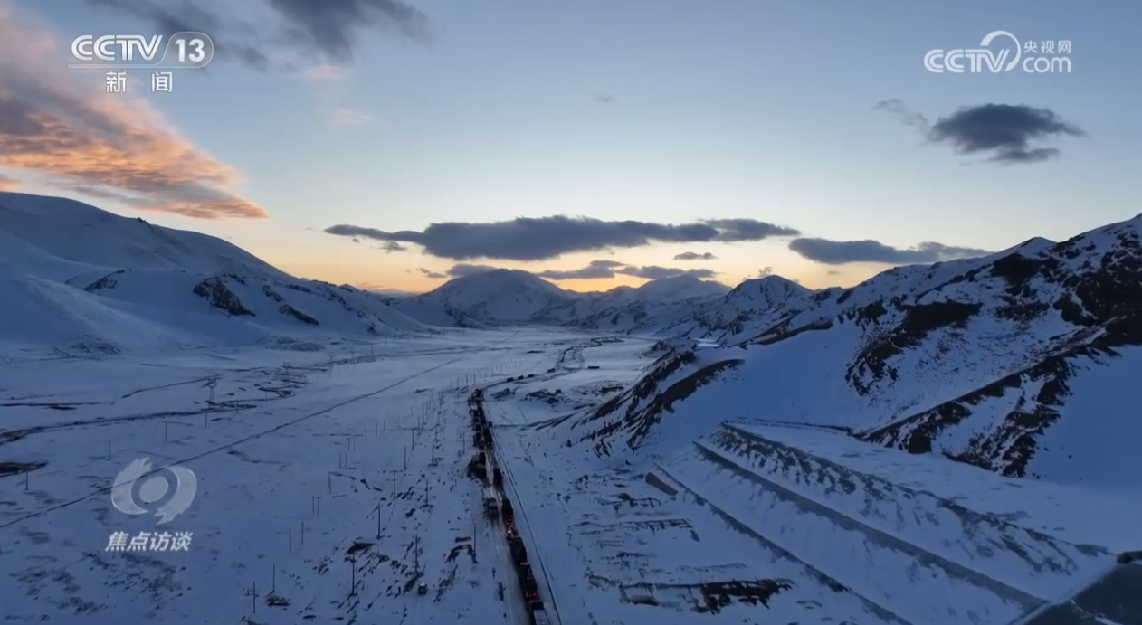 三月,天山上依然白雪茫茫,翻越天山的道路因冬季而封闭,想从南疆到北疆只能开上山至海拔三千多米后再绕行。然而,一天前的大雪,道路结冰,这些货车被滞留在了半山腰。