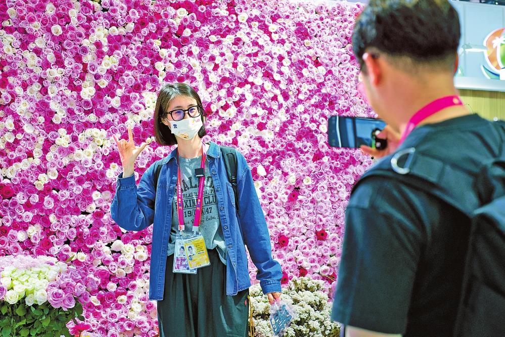 昆明杨月季园艺有限责任公司连续第3年参加消博会,他们布置的云南鲜花花墙,每年都成为消博会一道靓丽的风景,吸引各国观展者“打卡”。