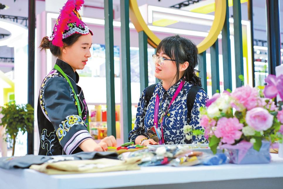 公司与100多位楚雄本地绣娘合作,在传承好当地文化的同时努力创新,让传统彝绣与香文化、茶文化、银文化、咖啡文化结合,让非遗走进更多消费者生活。展位负责人说:“我们的创意和产品受到了北上广客户的认可,接到了不少来自这些城市的订单。参加消博会,能看到更多前沿的消费精品、新品,让我们从中得到启发,收集了不少有价值的信息带回去给绣娘和公司创意团队。下次参会,我们一定会带着彝绣新产品和各地的消费者见面。”